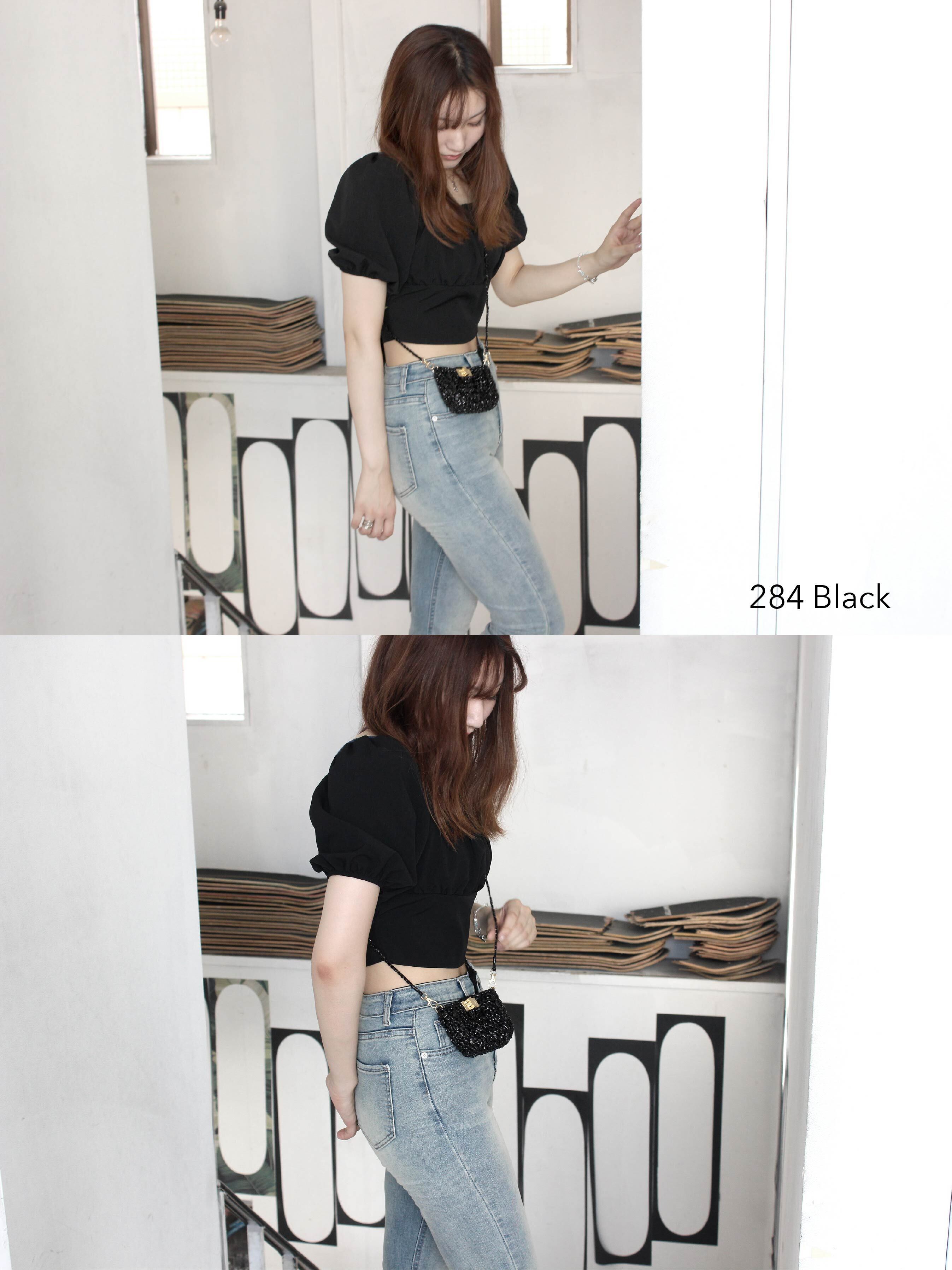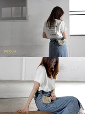光に反射してキラキラ光るミニバッグは小さいながらインパクトのあるアイテム。