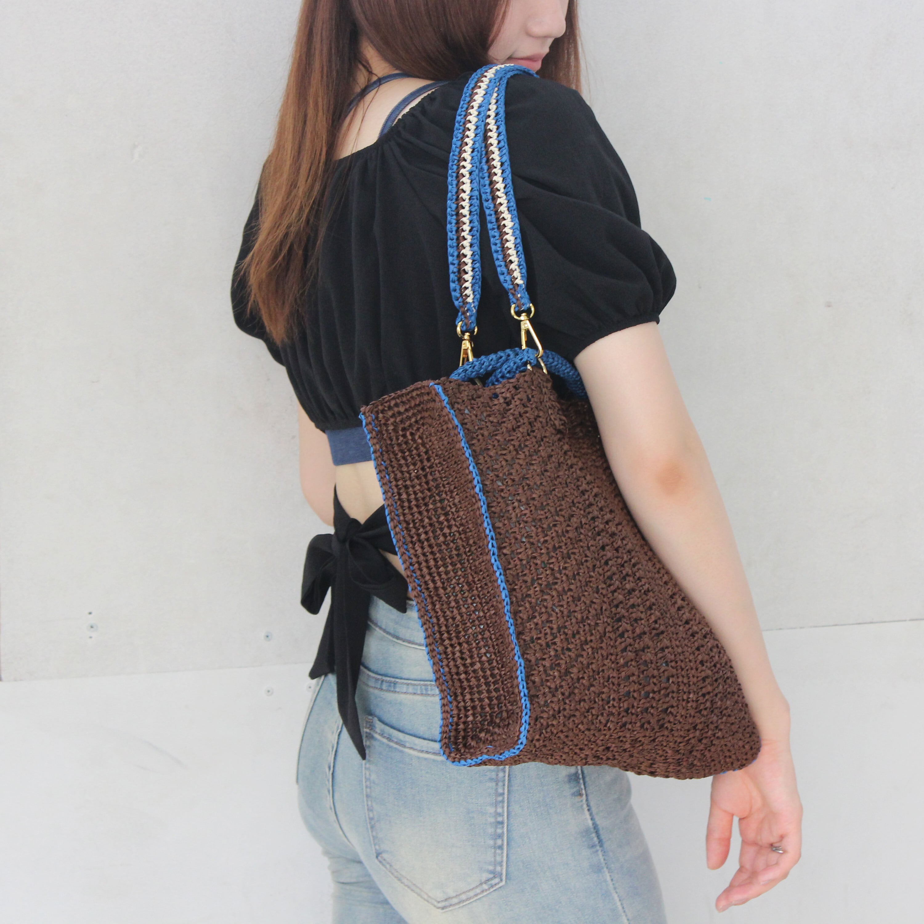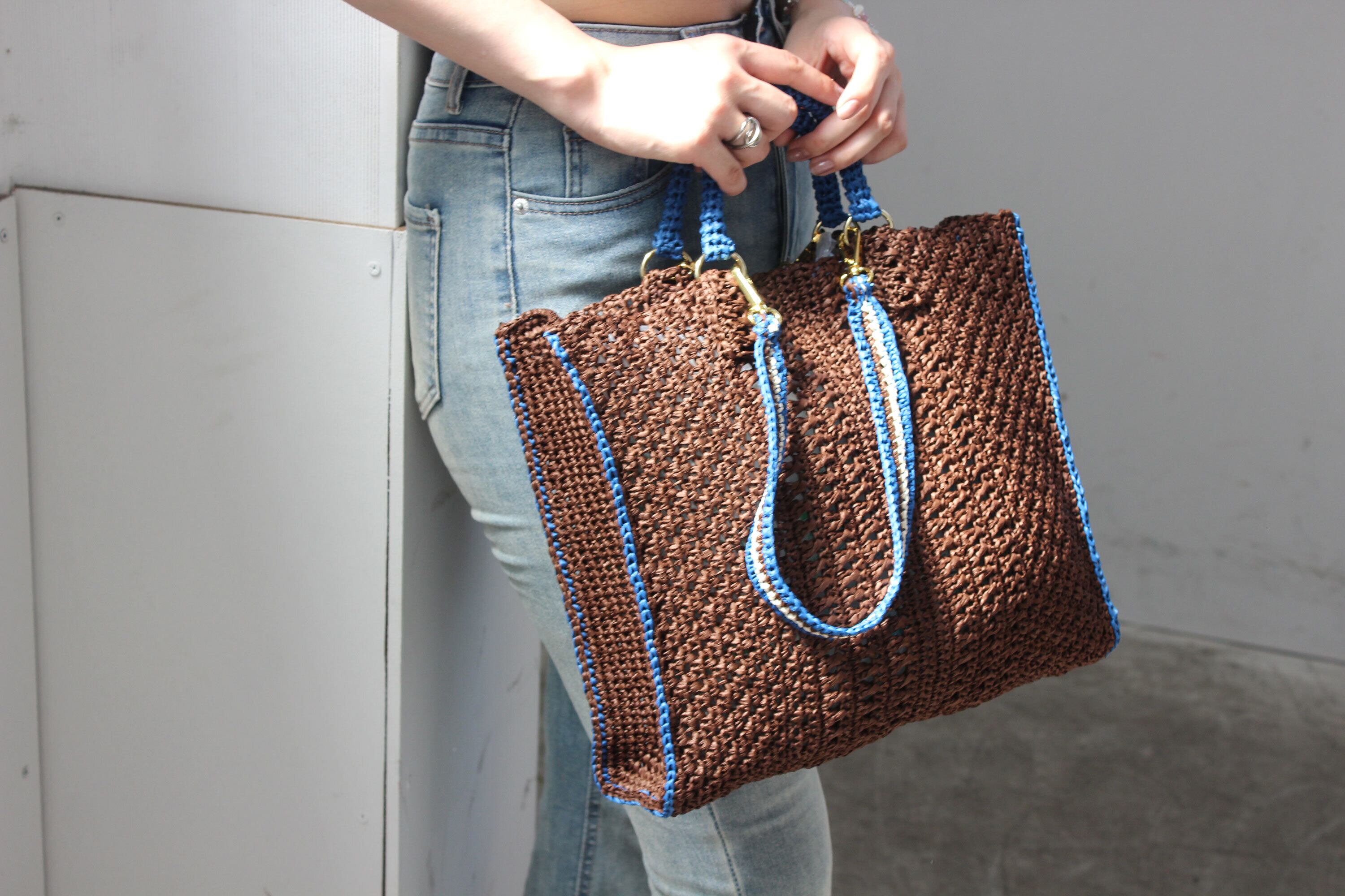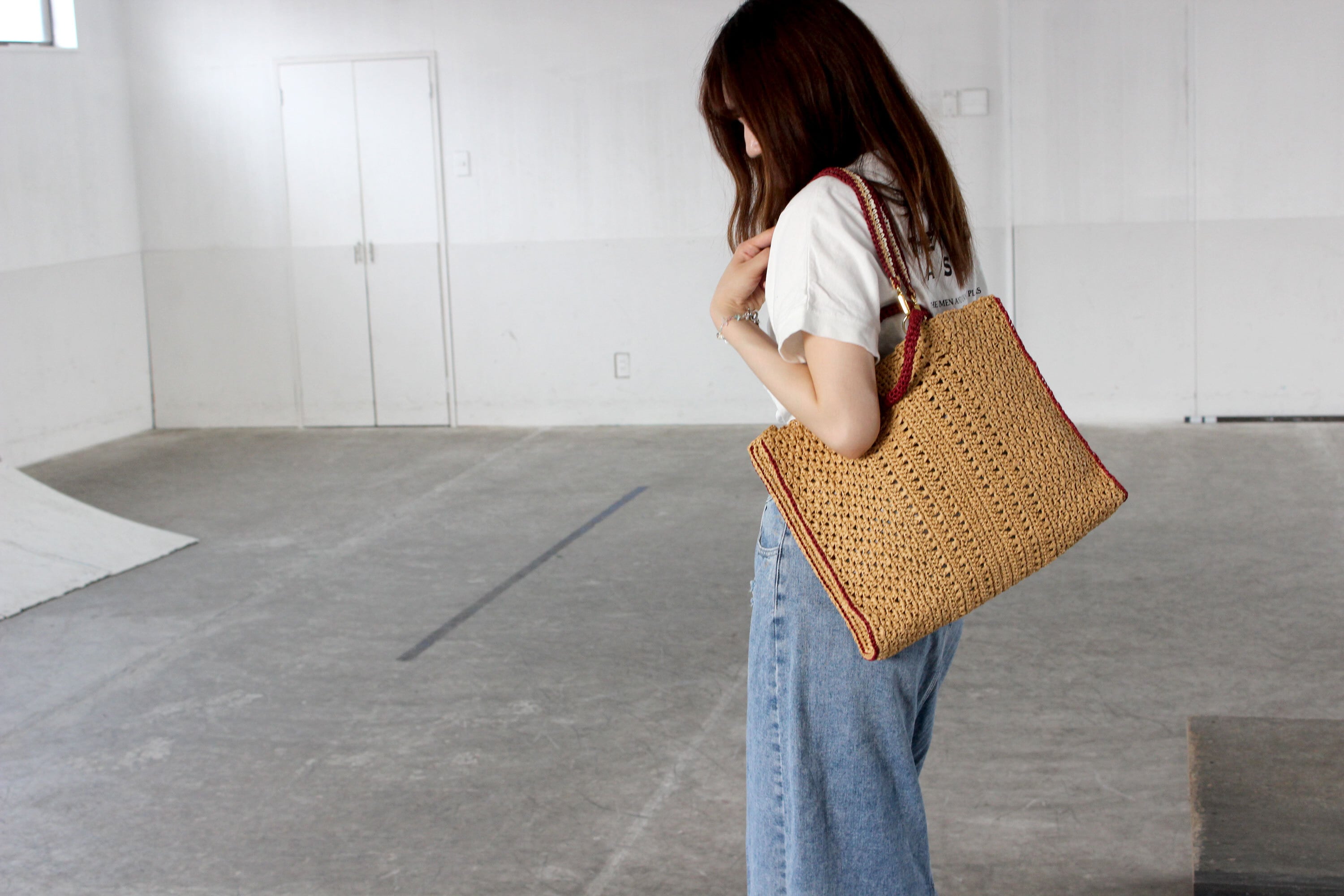 使用糸はdarumaの「クラフトクラブ」。軽いペーパーヤーンなので大きなバッグでも軽く仕上がります。