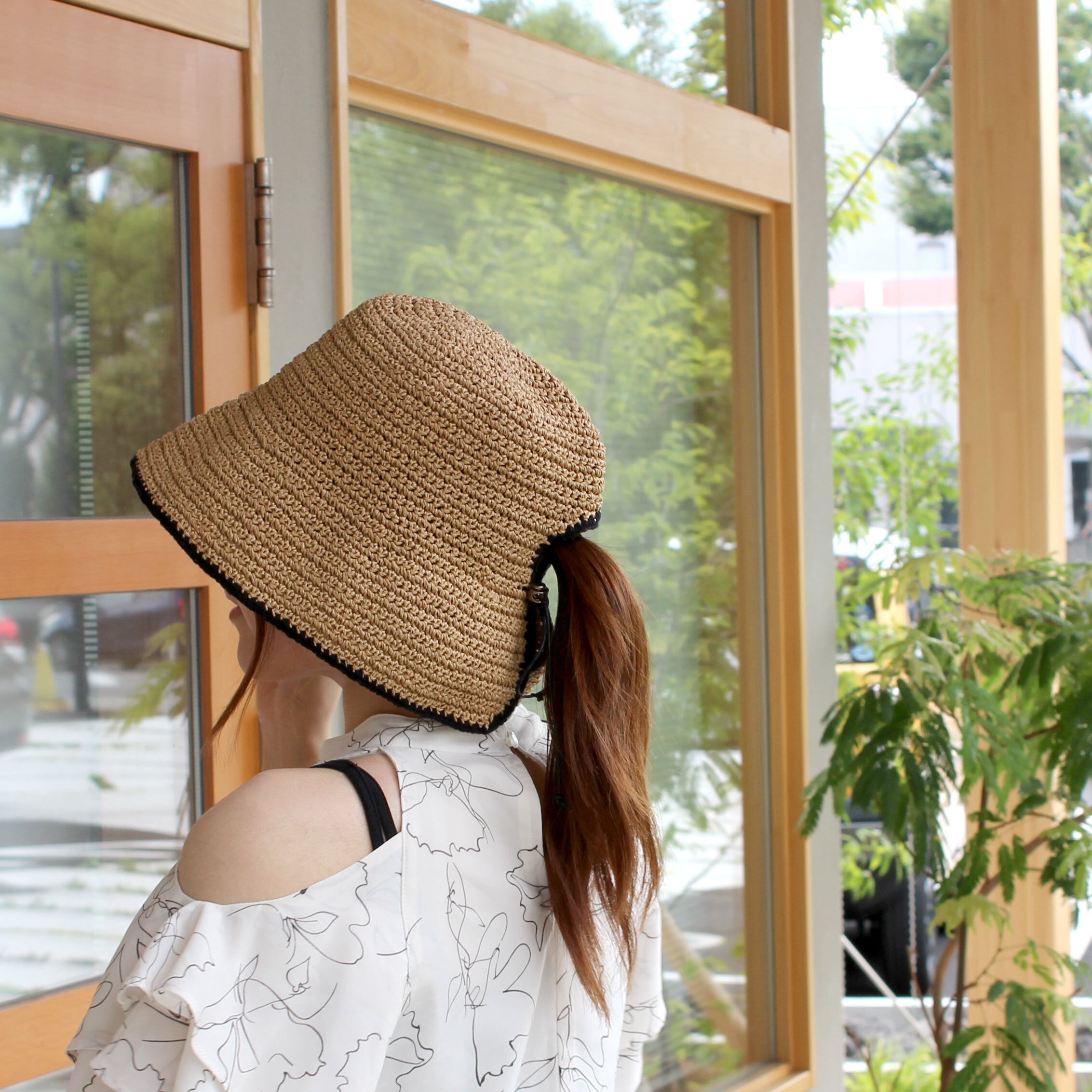 顔まわりの日差しを遮るようにブリムはあまり広げず、誰にでも似合うようなシンプルなデザインになっています。