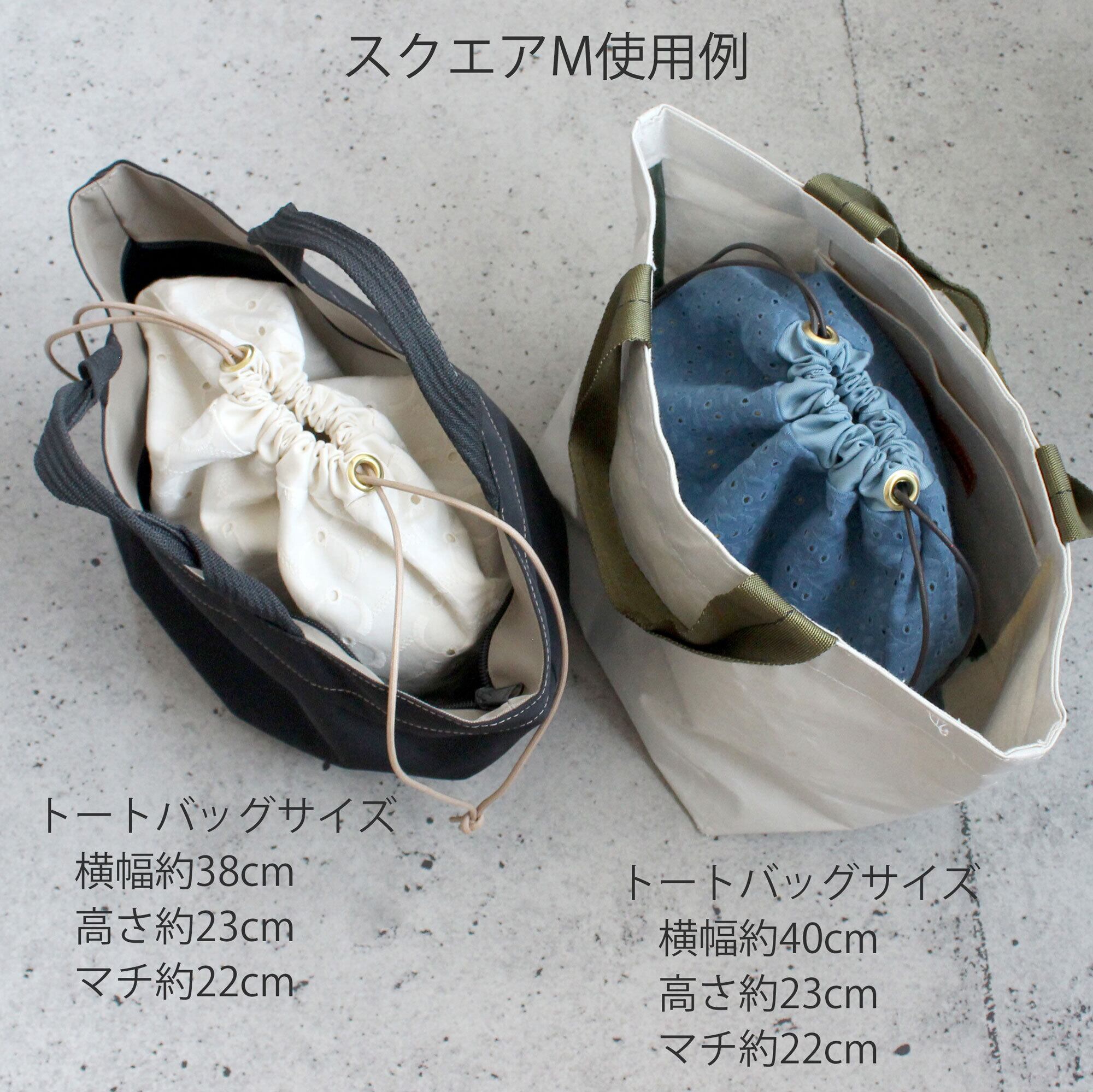 ダブルインナーバッグ (ブルーストライプ・スクエアM) 巾着 内袋 インバッグ バッグインバッグ -glitt Handmade-